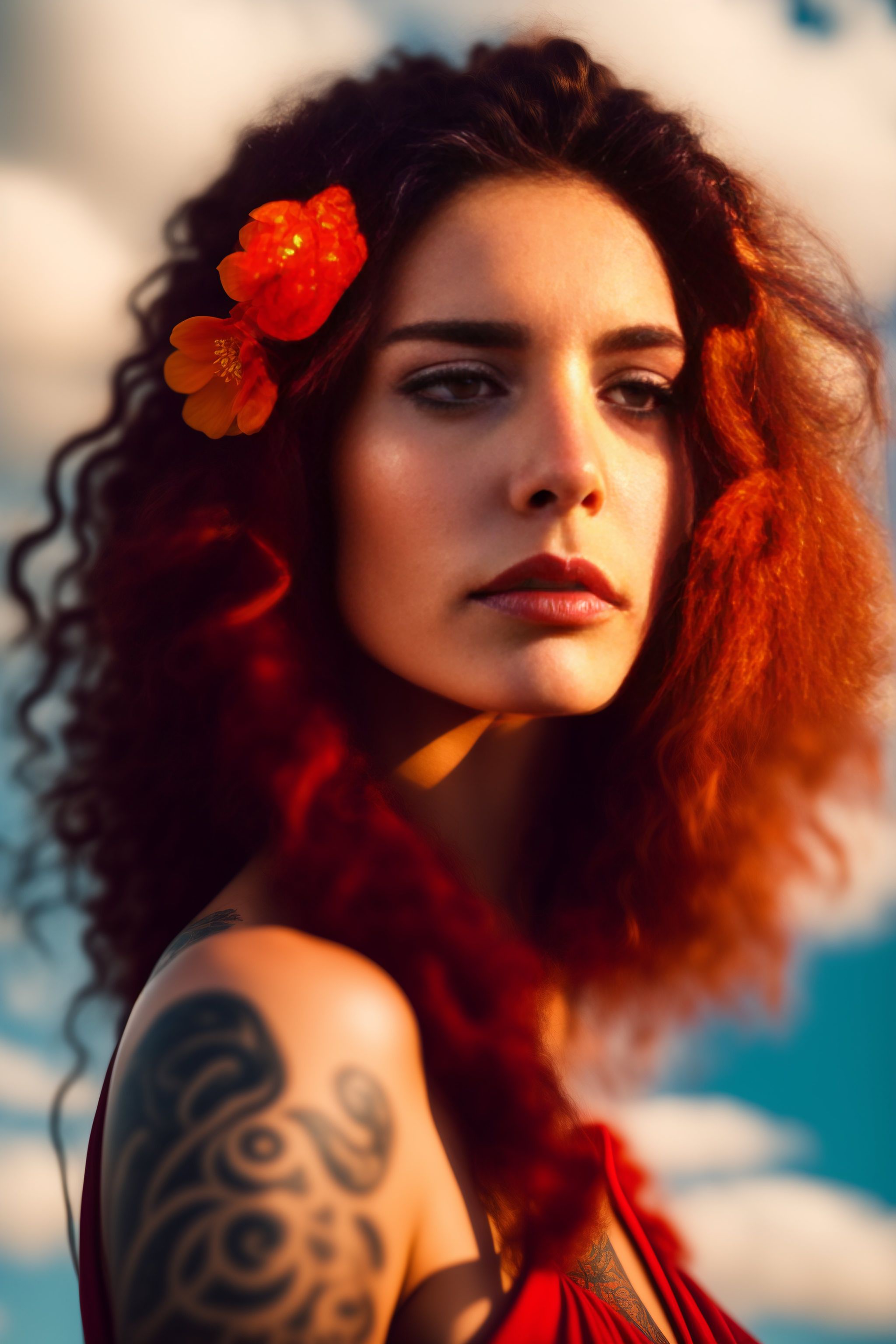 Lexica Slender Young Hippie Female Anatomically Correct Nape Of Neck Shoulders And Back In Full View With Elegant Beautiful Tattoos Of Red Begoni